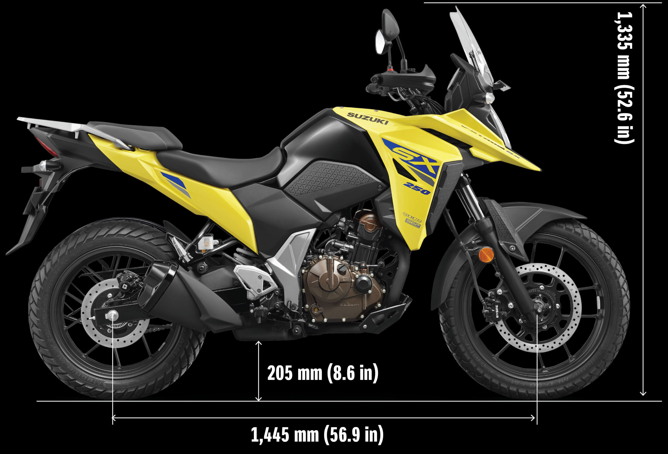 The 249cm3, 4-stroke 1-cylinder, 4-valve, oil-cooled SOHC engine featured in the V-STROM SX feels strong and linear, offering excellent torque.