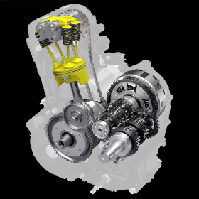 Analytic technology gained through MotoGP was used to develop the valves, shim type roller rocker arms, retainers and piston to reduce their weight.