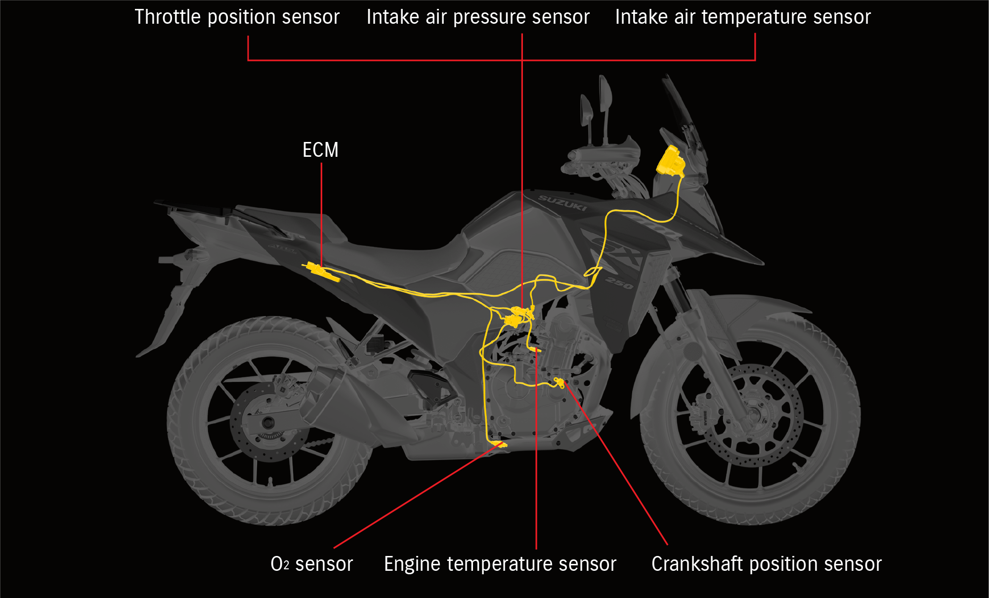 Sensors monitor and record data like air pressure and air temperature to deliver and inject the ideal amount of fuel to match riding conditions.